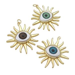 copper Evil Eye pendant paved zircon with enamel, gold plated, mixed, approx 25-33mm