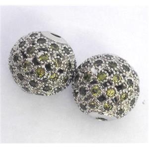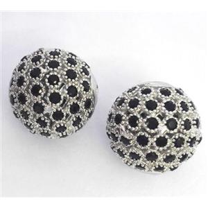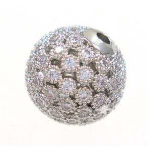 • round copper beads pave zircon, platinum plated, 10mm dia