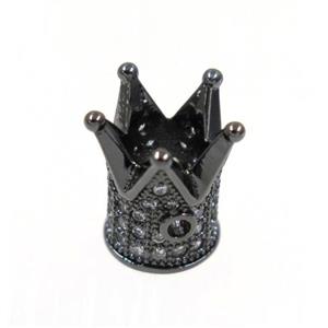 copper crown beads paved zircon, black plated, approx 9x11mm