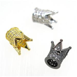 copper crown beads paved zircon, platinum plated, approx 9x11mm