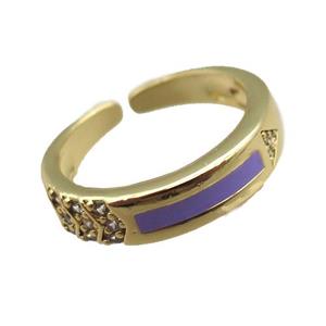 copper rings paved zircon with purple enameled, adjustable, gold plated, approx 5mm, 18mm dia