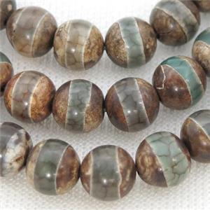 round khaki Tibetan Agate Beads, green line, approx 10mm dia