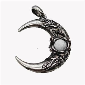 Alloy Moon Pendant Pave White Howlite Antique Silver, approx 35-40mm