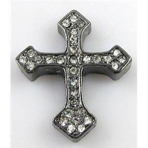 bracelet spacer, alloy cross with rhinestone, silver plated, 25x35mm