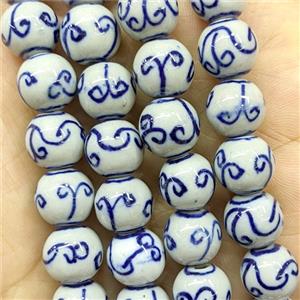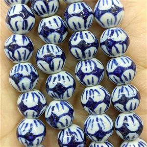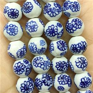 Porcelain Round Beads Blue Flower, approx 12mm, 32pcs per st