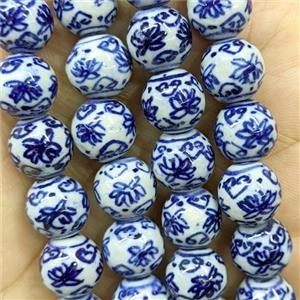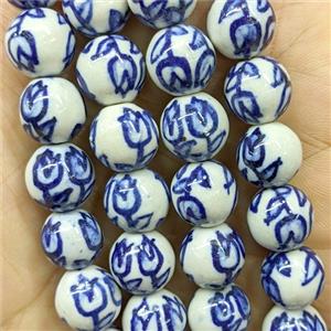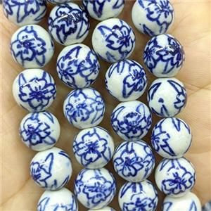 • Porcelain Round Beads Blue Flower, approx 14mm, 27pcs per st