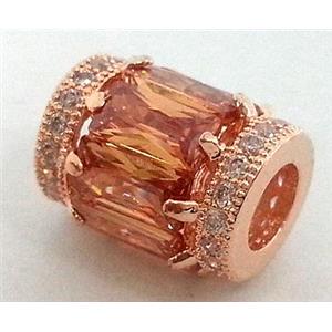 copper tube beads pave zircon, rose gold, approx 9x12mm, 5mm hole