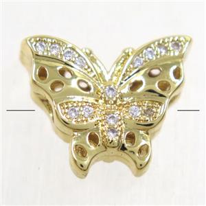 copper butterfly beads paved zircon, gold plated, approx 13-15.5mm