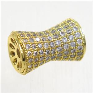 copper oval bead paved zircon with 3holes, gold plated, approx 4x16mm