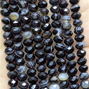 Black Striped Agate Beads Banded Faceted Rondelle Dye, approx 4x6mm