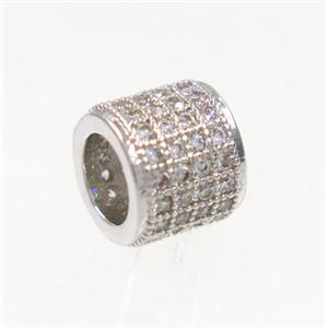 • copper tube beads paved zircon, platinum plated, approx 6x7mm, 4mm hole