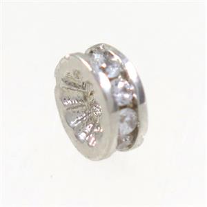 • copper rondelle beads paved zircon, platinum plated, approx 7.5mm dia