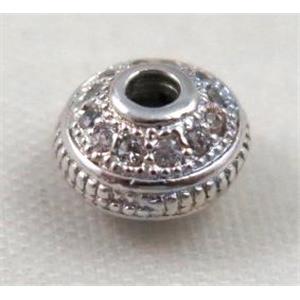 • copper spacer bead paved zircon, platinum plated, approx 5x7mm