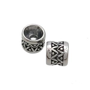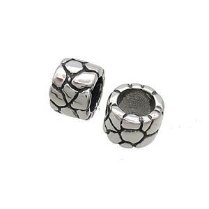 Stainless Steel barrel Beads, large hole, antique silver, approx 8mm, 6mm hole