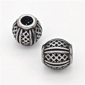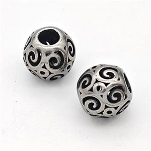 Stainless Steel Round Beads Hollow Large Hole Antique Silver, approx 9-10mm, 4mm hole