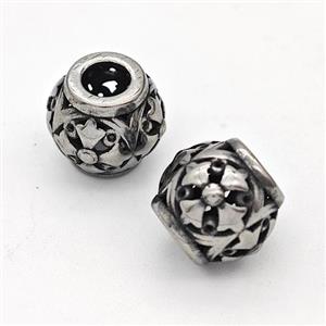 Stainless Steel Barrel Beads Large Hole Antique Silver, approx 12-13mm, 5mm hole