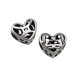 • Titanium Steel Heart Beads Zodiac Gemini Large Hole Hollow Antique Silver, approx 12mm, 4mm hole