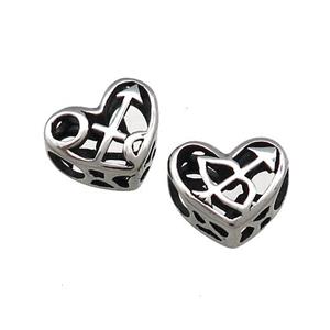 • Titanium Steel Heart Beads Zodiac Sagittarius Large Hole Hollow Antique Silver, approx 12mm, 4mm hole