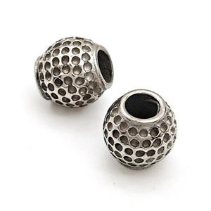 • Stainless Steel Round Beads Large Hole Antique Silver, approx 10-11mm, 5mm hole