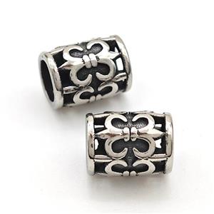 • Stainless Steel Tube Beads Fleur De Lis Large Hole Antique Silver, approx 9-12mm, 5mm hole