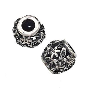 • Stainless Steel Barrel Beads Hollow Flower Large Hole Antique Silver, approx 9-10mm, 4mm hole