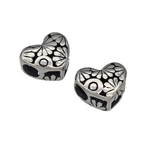 • 316 Stainless Steel Heart Beads Hollow Large Hole Antique Silver, approx 9-10mm, 4mm hole