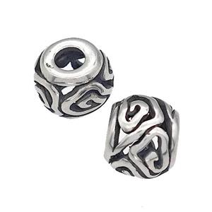 • 316 Stainless Steel Barrel Beads Heart Hollow Large Hole Antique Silver, approx 9-10mm, 4mm hole