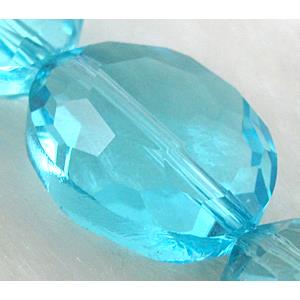 crystal glass beads, faceted rondelle, aqua, approx 14mm dia, 8mm thin, hole: 4.7mm