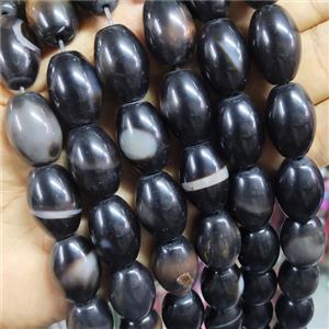 • Black Onyx Agate Beads, Faceted Rice, approx 8x12mm