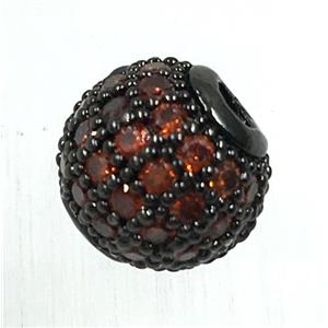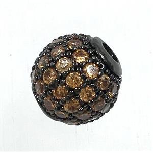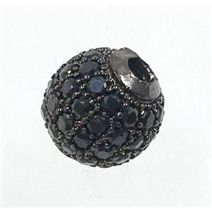 round copper bead paved zircon, black plated, hollow, approx 8mm dia