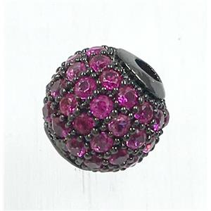 round copper beads pave hotpink zircon, black plated, approx 8mm dia