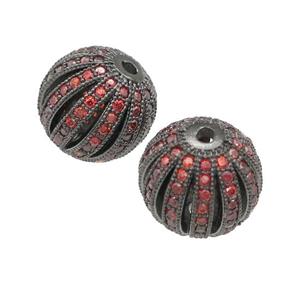 copper pumkin beads pave red zircon, black plated, approx 14mm dia