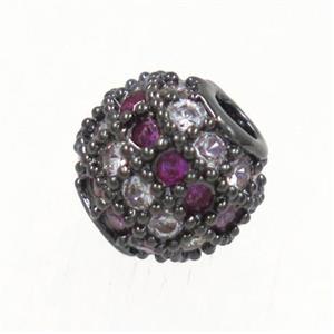 • round copper beads paved hotpink zircon, black plated, approx 6mm dia
