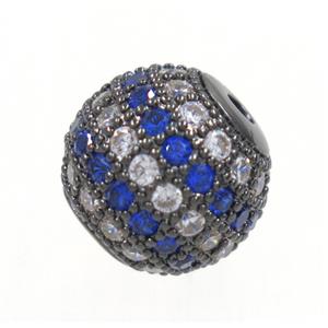 • round copper beads paved blue zircon, black plated, approx 12mm dia