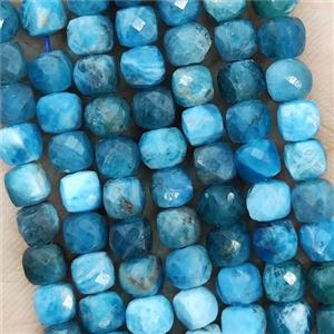 Natural Apatite Beads Blue Beads Faceted Cube, approx 3.7-4.4mm