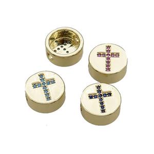 Copper Button Beads Pave Zircon Cross Gold Plated Mixed, approx 11mm dia
