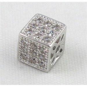Zircon, bracelet spacer, copper bead, platinum plated, 8x8x8mm