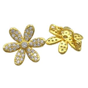 copper flower beads paved zircon, gold plated, approx 33x35mm