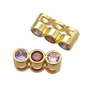 copper beads paved zircon, gold plated, approx 6-13mm, 2x10mm hole