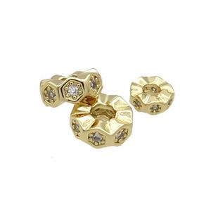 copper heishi beads pave zircon, gold plated, approx 5-8mm, 4.5mm hole