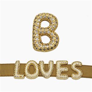 • Copper Watchband Beads Pave Zirconia Letter-B Flat Hole Gold Plated, approx 10-14mm, 2-10mm hole