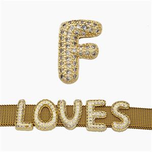 • Copper Watchband Beads Pave Zirconia Letter-F Flat Hole Gold Plated, approx 10-14mm, 2-10mm hole