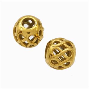Titanium Steel Round Beads Large Hole Hollow Gold Plated, approx 9-10mm, 4mm hole