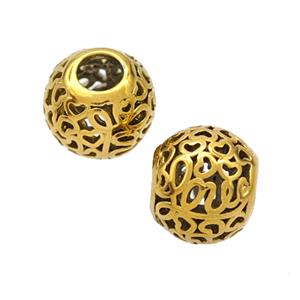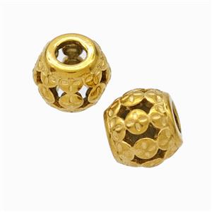 Titanium Steel Round Beads Large Hole Hollow Flower Gold Plated, approx 9-10mm, 4mm hole