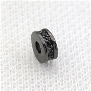 • copper spacer beads paved zircon, heishi, black plated, approx 6mm dia