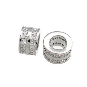 Copper Heishi Beads Pave Zircon Large Hole Platinum Plated, approx 6mm
