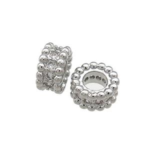 Copper Spacer Beads Pave Zircon Heishi Platinum Plated, approx 6mm