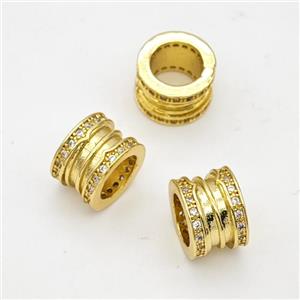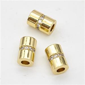 • Copper Barrel Beads Micropave Zirconia Large Hole Gold Plated, approx 9-10mm, 4mm hole