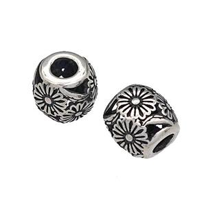 316 Stainless Steel Barrel Beads Flower Hollow Large Hole Antique silver, approx 9-10mm, 4mm hole
