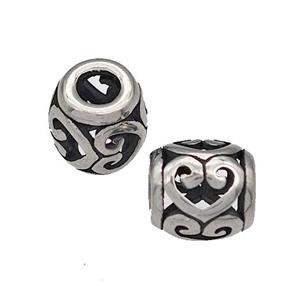 316 Stainless Steel Barrel Beads Heart Hollow Large Hole Antique Silver, approx 9-10mm, 4mm hole
